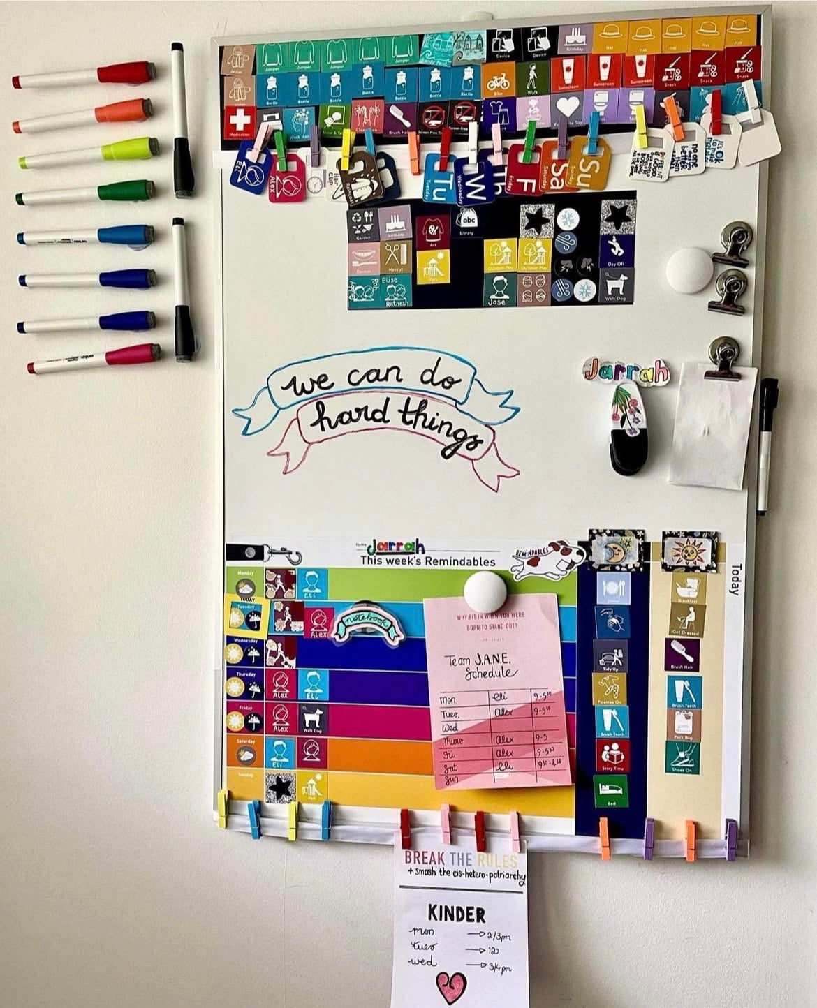 Magnetic charts to help you stay organised by planning your week, tracking what to pack, and keeping up with upcoming activities. They reduce stress and chaos by providing a clear, visual guide to your schedule.